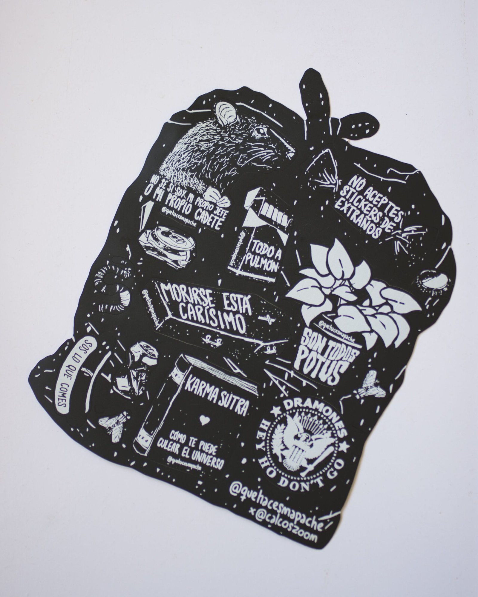 Stickers super resistentes, podés escupirlos y pasarles por arriba con un tractor, si tenés un tractor, claro.