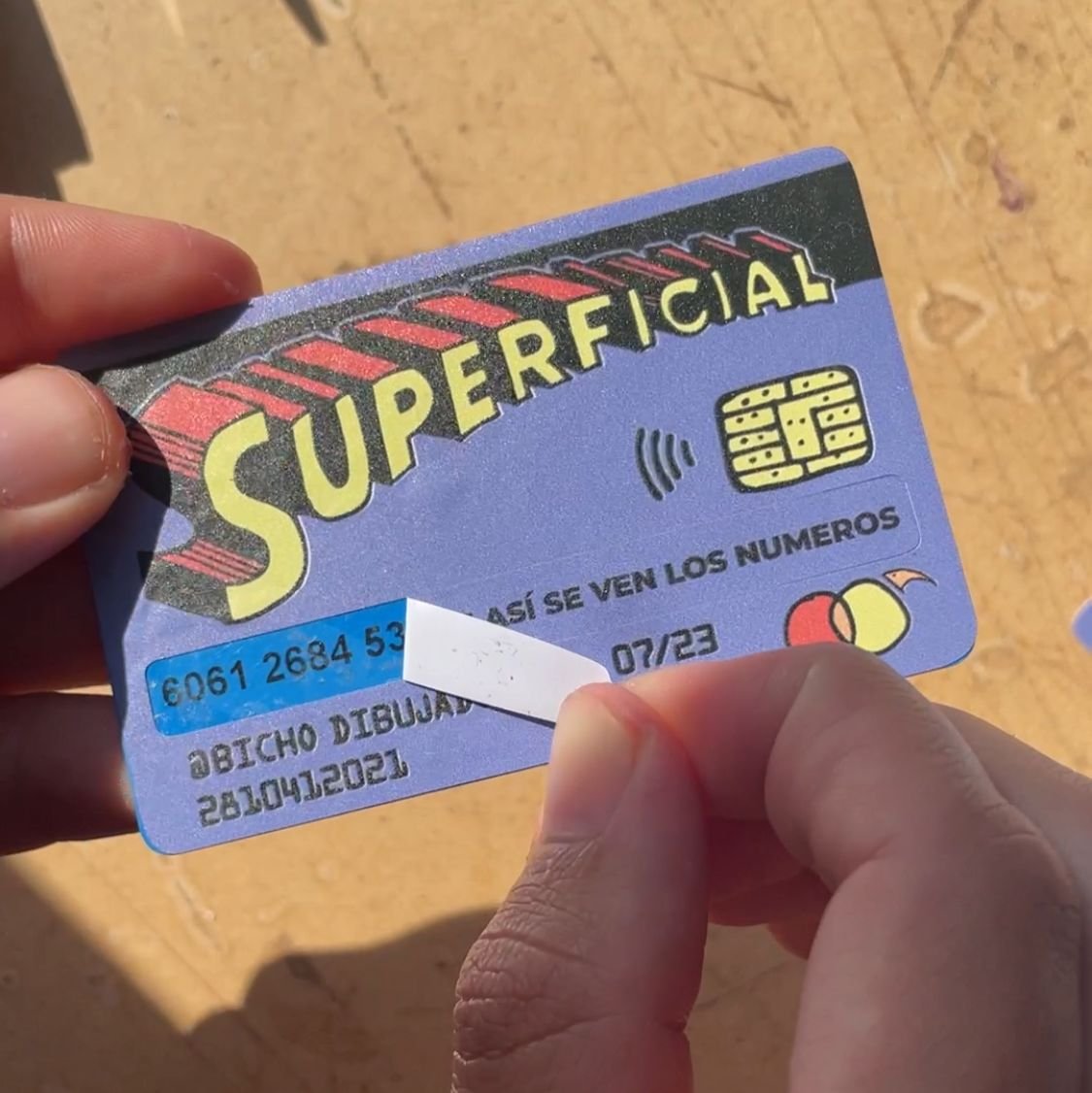 Superficial Card, para pegar en tu sube, tarjeta de credito, debito, o en tu tarjeta añeja del Sacoa, el tamaño del sticker es exacto para cualquier tarjeta, y en esta nueva versión, tiene un espacio para que se vean tus numeros.